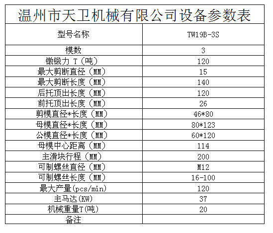 您當前的位置:首頁 / 產品中心 / 三模三沖冷鐓機 / └ TW19B(M12)多工位冷鐓機 / TW19B-3S全自動多工位冷鐓機